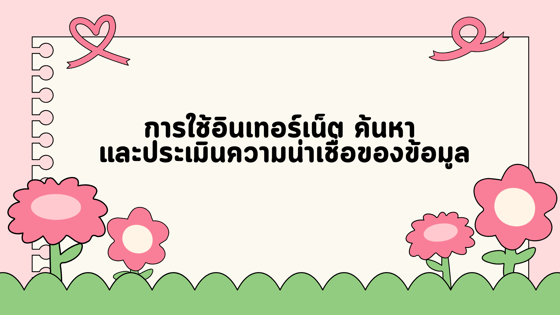 การสืบค้นและนำเสอนข้อมูลการใช้คำค้นที่ชัดเจนช่วยให้ค้นหาข้อมูลได้รวดเร็วและตรวงจุดถือแหล่งข้อูลและนำข้อมูลจากหลายที่มาเปรียบเทียบครวเลือกเนื้อหาที่สอดคล้องแล้วเรียบเรียงเป็นภาษาของตนเองให้เหมาะสมกับเป้าหมายและการใช้อิเทอร์เน็ตอย่างปลอดภัย